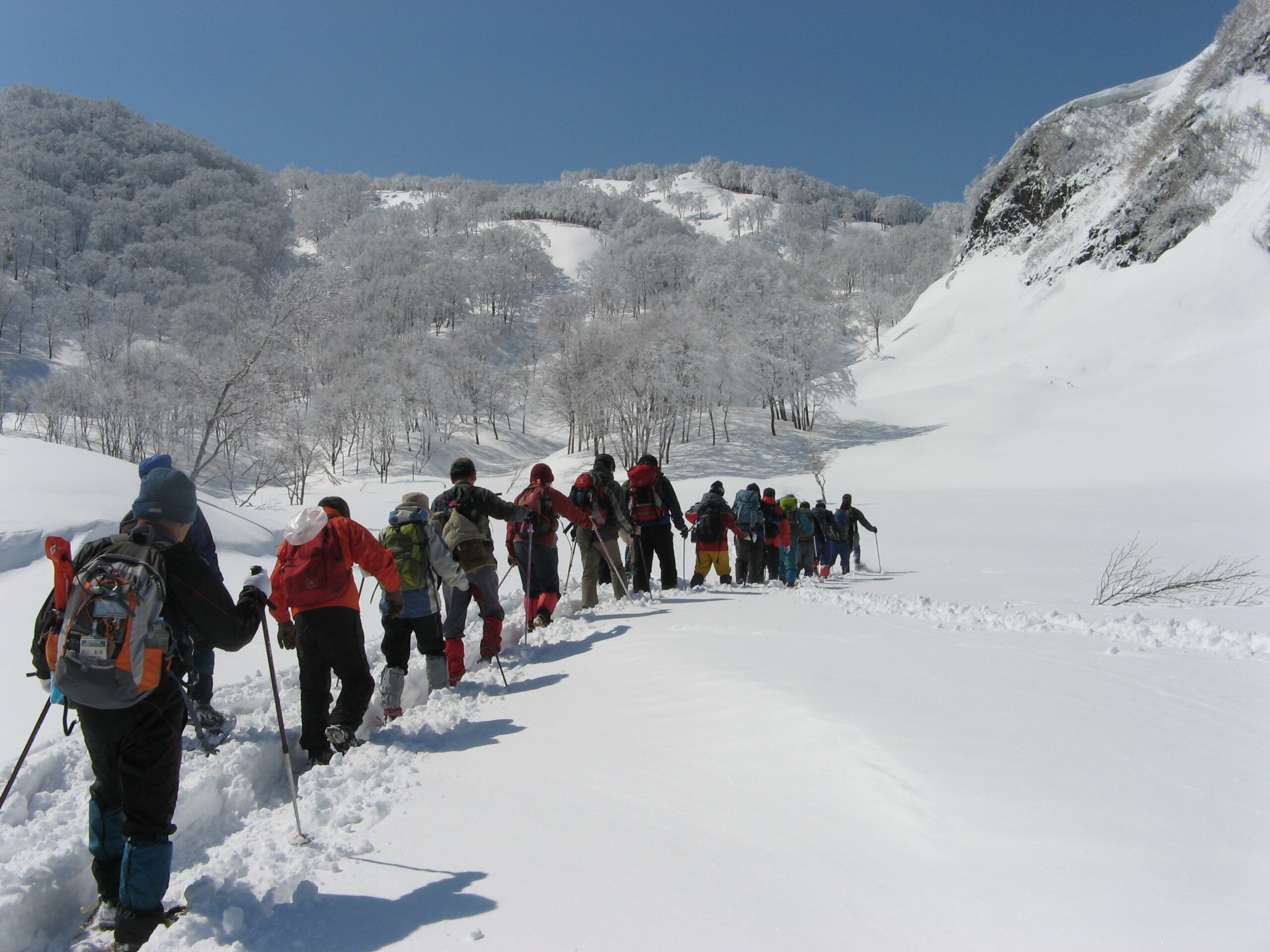 インストラクター付きスキーレッスンを雄大な自然の中で体験し、仲間との絆を深める。
