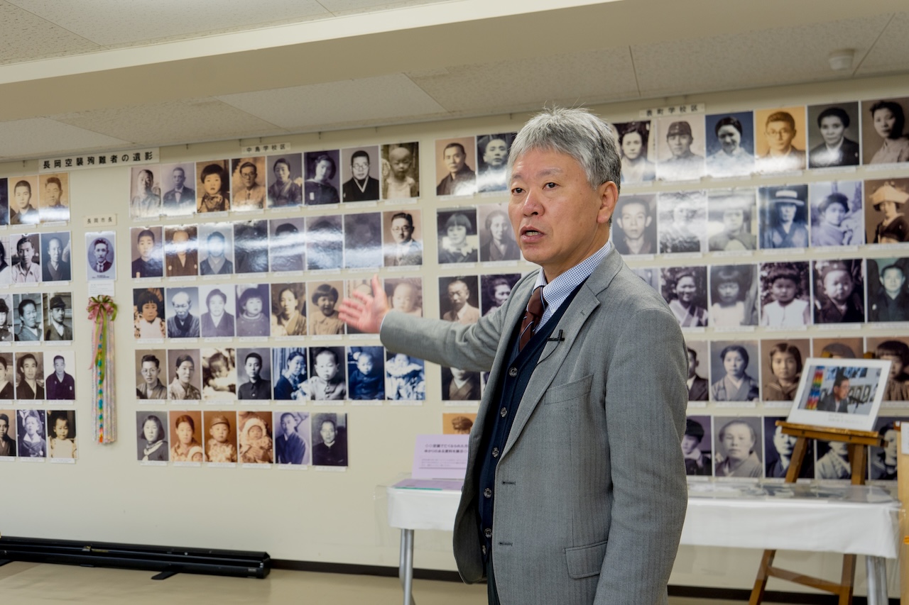 長岡市にある「長岡戦災資料館」は、「長岡空襲」の記憶を後世に伝える施設です。昭和20(1945)年8月1日夜、アメリカ軍のB29爆撃機125機が長岡市を襲撃し、約16万3,000発の焼夷弾を投下しました。その結果、市街地の約80%が焼失し、現在確認されているだけで1,488人の尊い命が失われました。館内には、当時の様子を伝える多くの展示があります。「遺影展示」のコーナーでは、長岡空襲で亡くなった1,488人のうち、現在369人分の遺影が展示されています(時期により、展示内容が変わります)