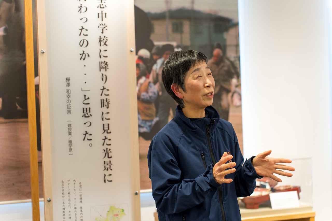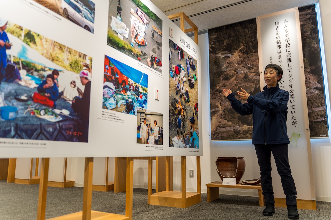 「おらたる」では、小学生の高学年から高校生を対象に、地震災害に特化した減災学習「やまこし減災学習プログラム」を提供しています。「広く浅く、ではなく、あくまでも山古志が得意とすることに特化したプログラムを組んでいます」そう話すのは、「おらたる」で減災プログラム学習などに取り組む小池裕子さん。訪問した生徒たちは、まず山古志の被災状況や復興の歴史について学び、その後、実際に地域を歩きながら、「もし自分が被災したらどうするか?」を考えるワークショップに参加するなど、学びを深めていきます。