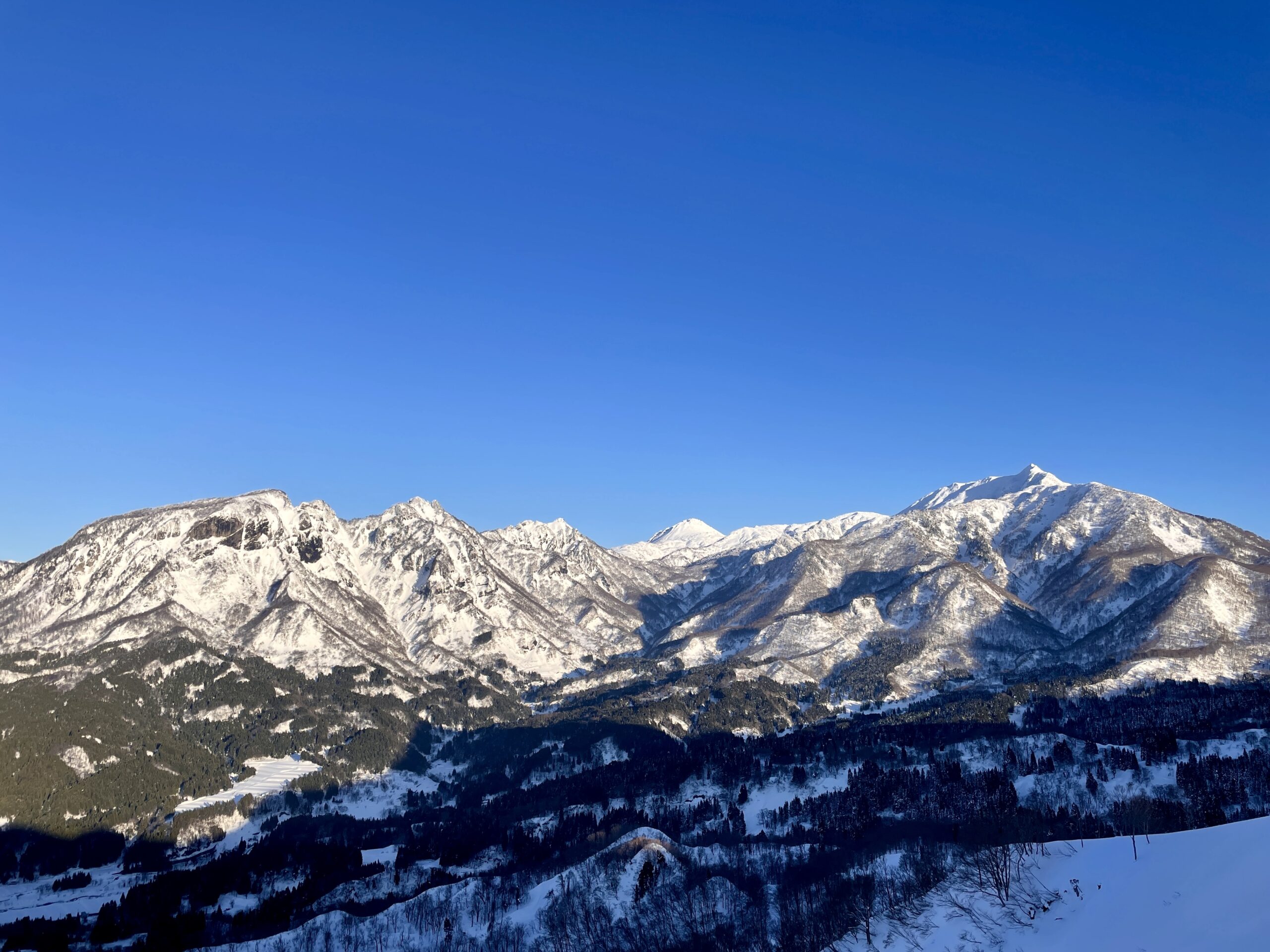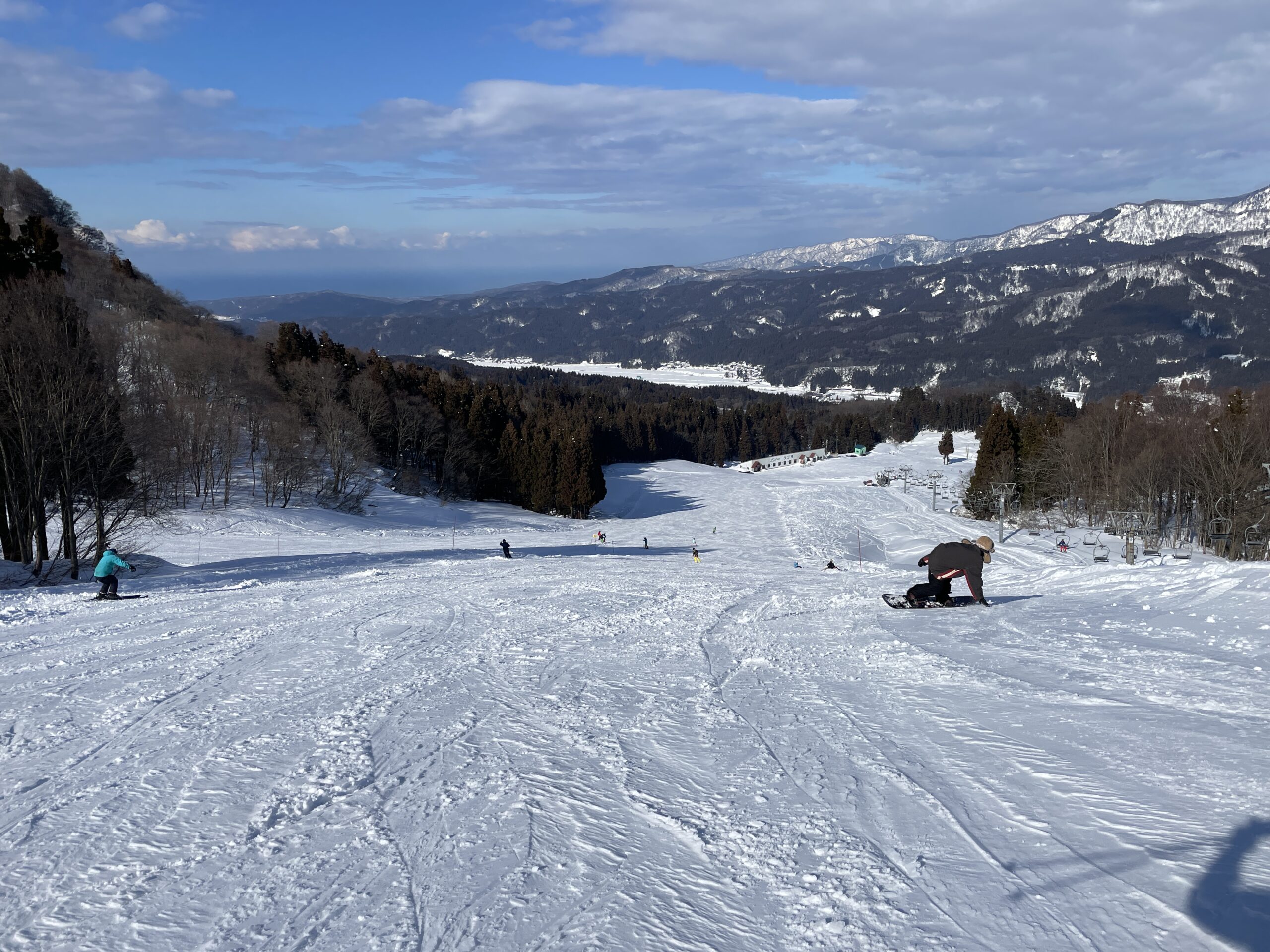 正面に駒ケ岳・鬼面山・雨飾山、後方に中部山岳国立公園の白馬連峰が広がるスキー場。晴れた日には日本海、遠くは佐渡・能登半島が望めます。