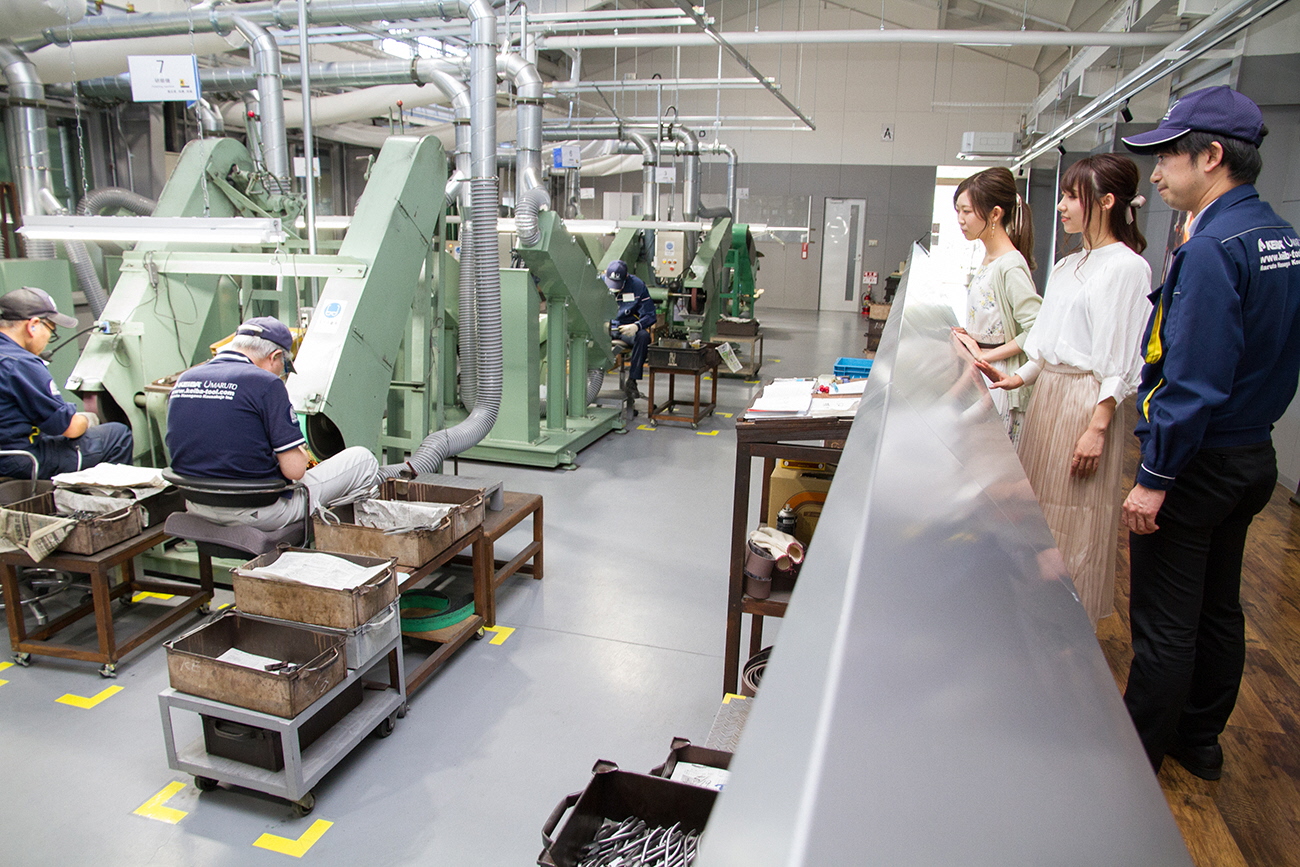ニッパーや爪切りといった金属製品を一貫生産している当社の工場を見学してもらうことで、ひとつの製品ができるまでの流れや、そこで駆使されている様々な技術を知ることができます。さらに、見学後にそこで実際に働く職人とお話してもらうことで仕事をするうえでのこだわりや、やりがい、苦労などを身近に感じていただけます。