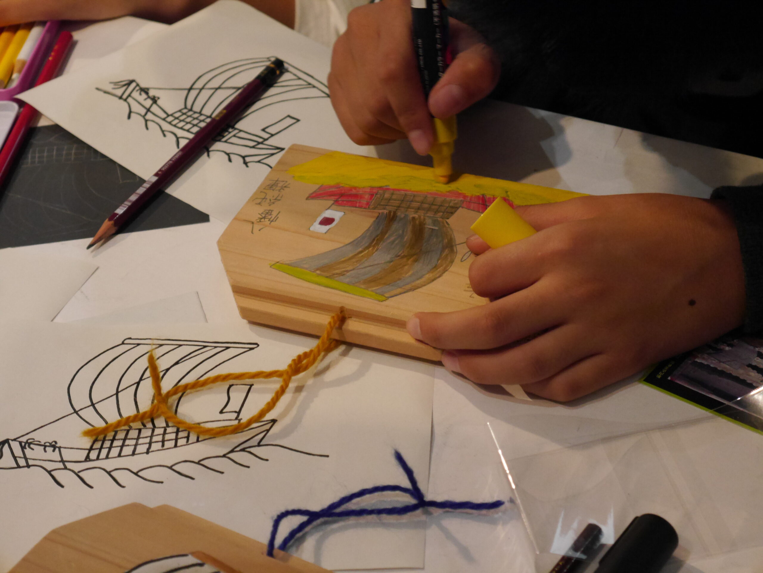 胎内市美術館コーディネーターが小学校などに出張して、楽しい美術の授業やワークショップを行います。