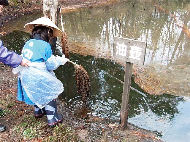 日本書紀(668年)に、この地から「天智天皇」に原油を献上した記録「越の国から燃える水(原油)を献上する」がある国史跡。明治6年英人医師シンクルトンが来村し、「手掘り井戸」による採油法を指導したことからシンクルトン公園と命名されています。