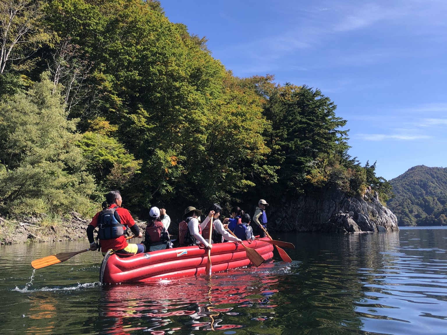 静かな湖面でダムが作りだした雄大な大自然を味わいます。