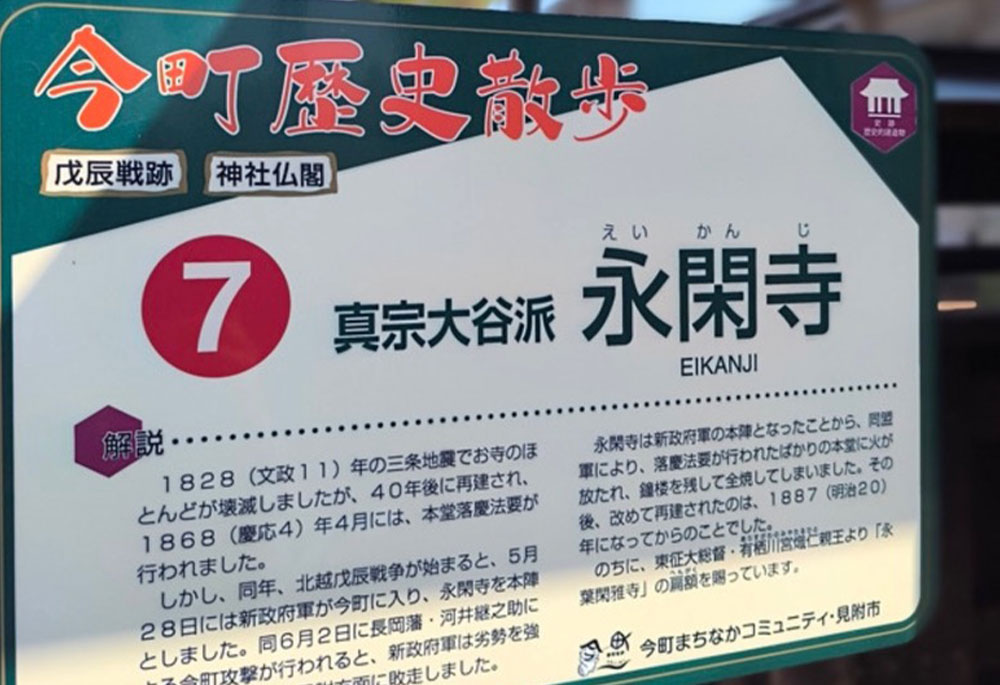 見附市の今町は、北越戊辰戦争の激戦地の一つとして知られています。この戦争では、長岡藩と新政府軍が激しく衝突し、街の至るところで戦闘が繰り広げられました。この歴史散歩では、「なびらーず」のガイドとともに、当時の戦いの舞台を歩きながら、長岡藩家老・河井継之助の戦略や、その立場から見た戊辰戦争の意味を考えます。